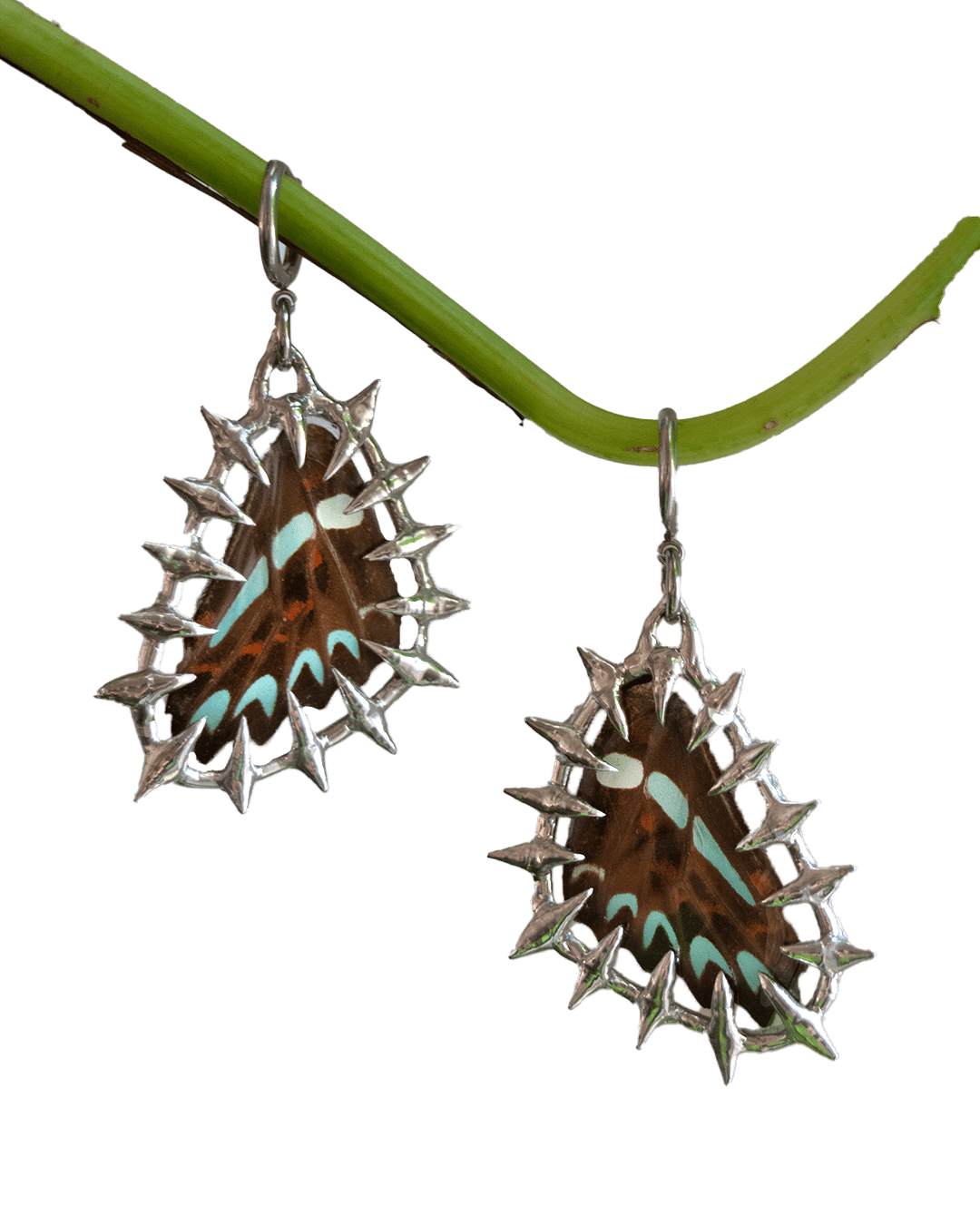 Made with butterfly wings (laminated & preserved in resin) lead-free tarnish-resistant solder (silver & tin), and 304 stainless steel huggies. Also, not as heavy as they look!