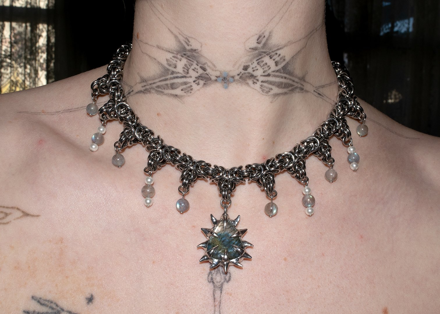 Made with labradorite, labradorite beads, pearlescent beads & 304 stainless steel jump rings.