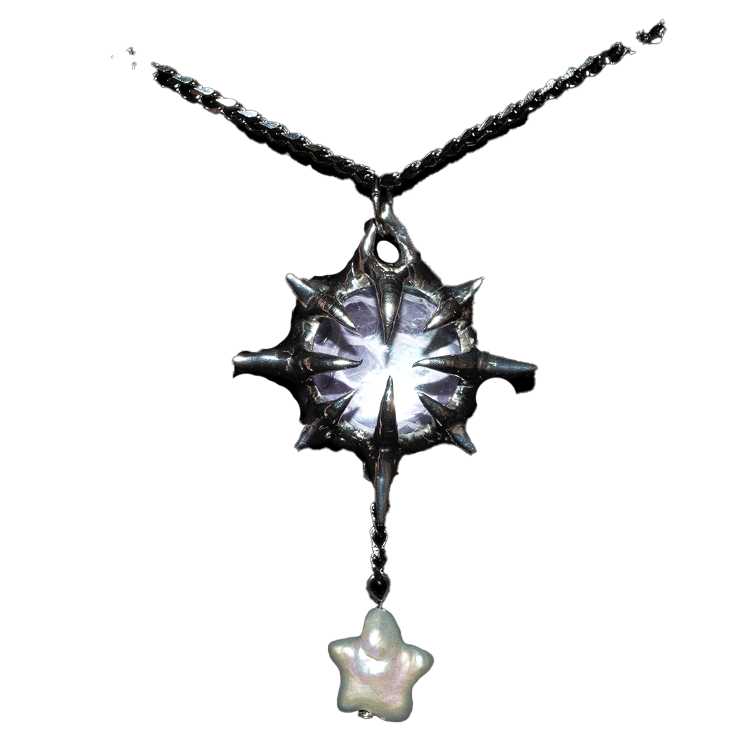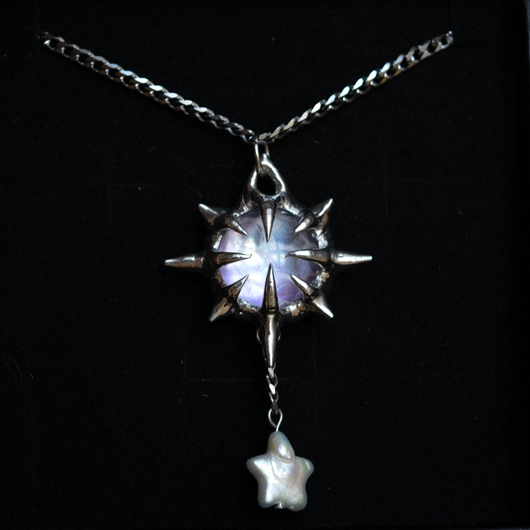 Made with the shed of a snake named Bubble preserved beneath a glass dome, a freshwater pearl star, lead-free tarnish-resistant solder (silver & tin) & 304 stainless steel chain/findings.