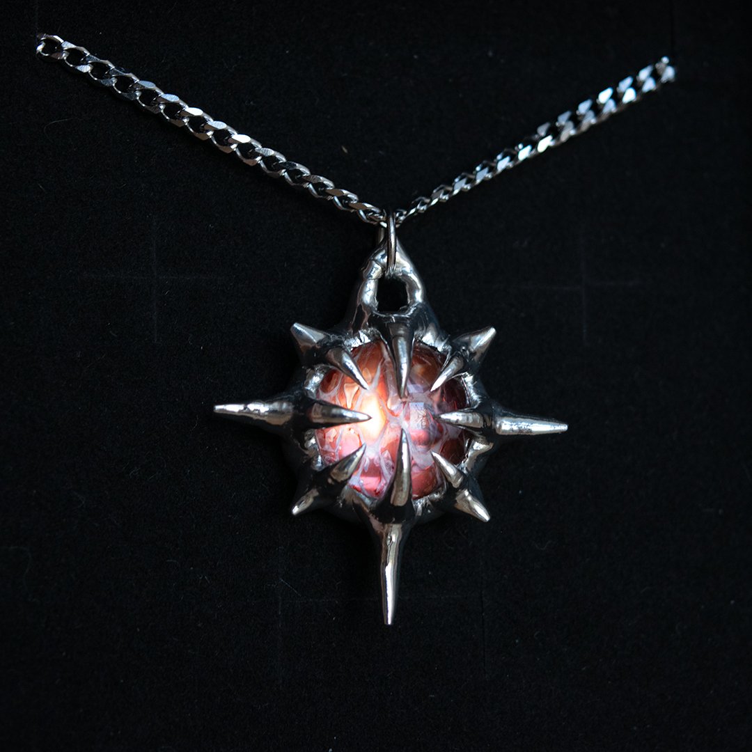 Made with the shed of a snake named Bubble preserved beneath a glass dome, lead-free tarnish-resistant solder (silver & tin) & 304 stainless steel chain/findings.