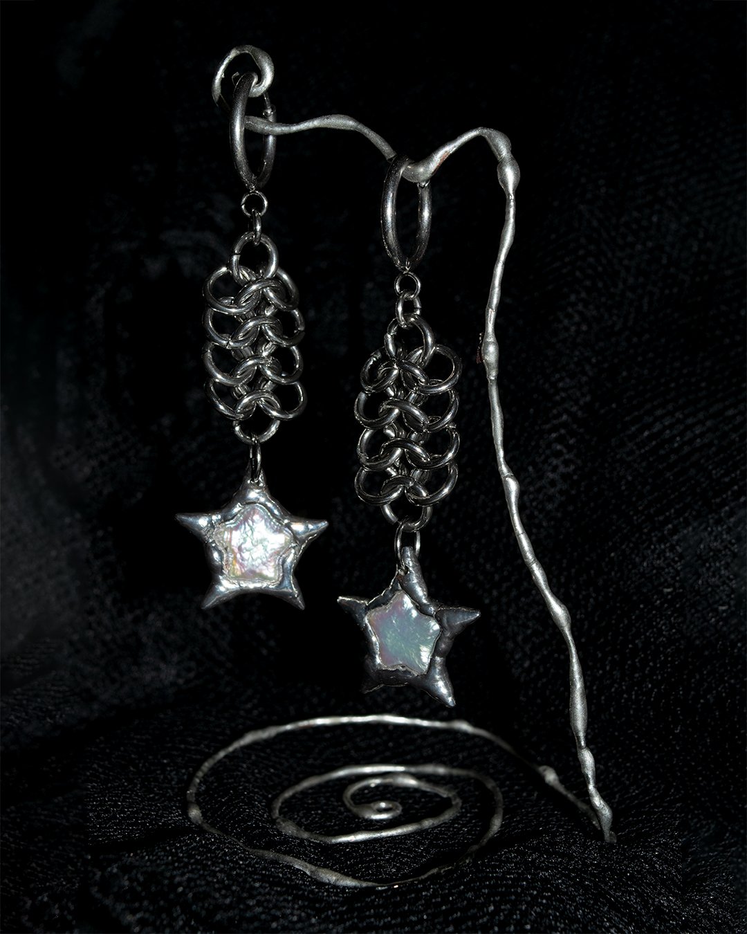 Made with lead-free tarnish-resistant solder (silver & tin), stainless steel jump rings, pearl stars, and 304 stainless steel huggies.