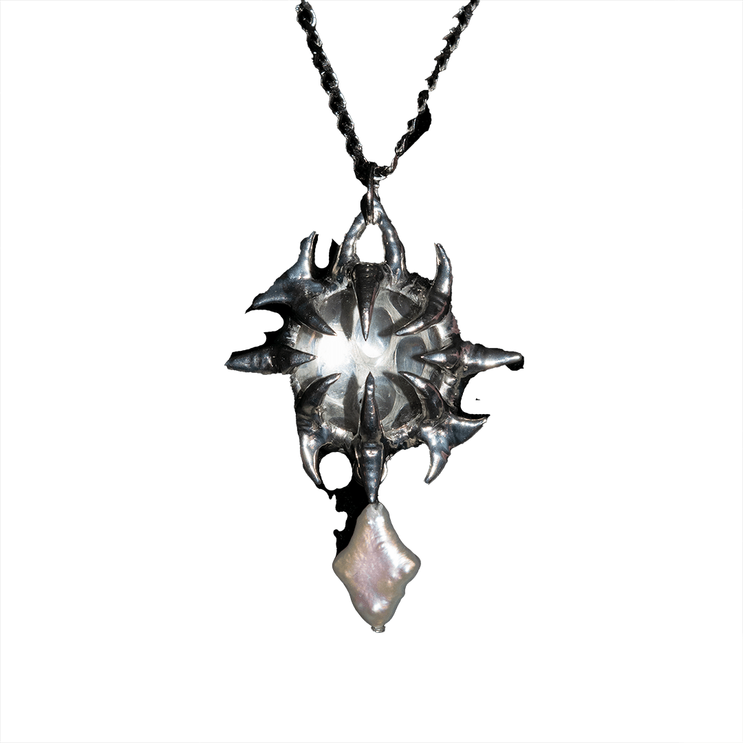 Made with the shed of a snake named Bubble preserved beneath a glass dome, a freshwater pearl star, lead-free tarnish-resistant solder (silver & tin) & 304 stainless steel chain/findings.